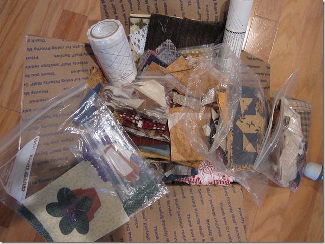 I had several fun packages arrive while we were gone. One was from Mary at Quilt Hollow. She is downsizing in getting ready for a move and was looking forward to getting rid of some of her scraps. You have never seen such a full box of all sorts of fabulous goodies. I told her she can come pack for me anytime!!! There are many wonderful bits, blocks, hsts and all else. Why is it someone else’s scraps are always more interesting that your own?