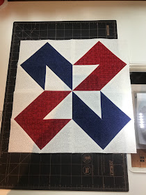 Marsha (IG@quilterinmotion) is our queen bee this month in our Gridster Bee.  This was her choice of blocks for us.  I love the crispness or a red, white and blue color combination.   I did two blocks, but forgot to photograph the other one.  ;-(