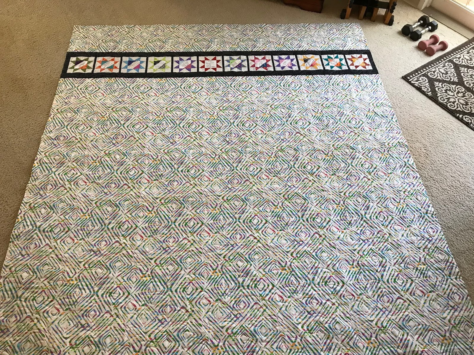 It was my block choice for my month of the Gridster Bee. Each of my beemates included an extra block so the construction of the quilt went quickly. They were all stars in my book and I included their signature blocks in stars on the back.